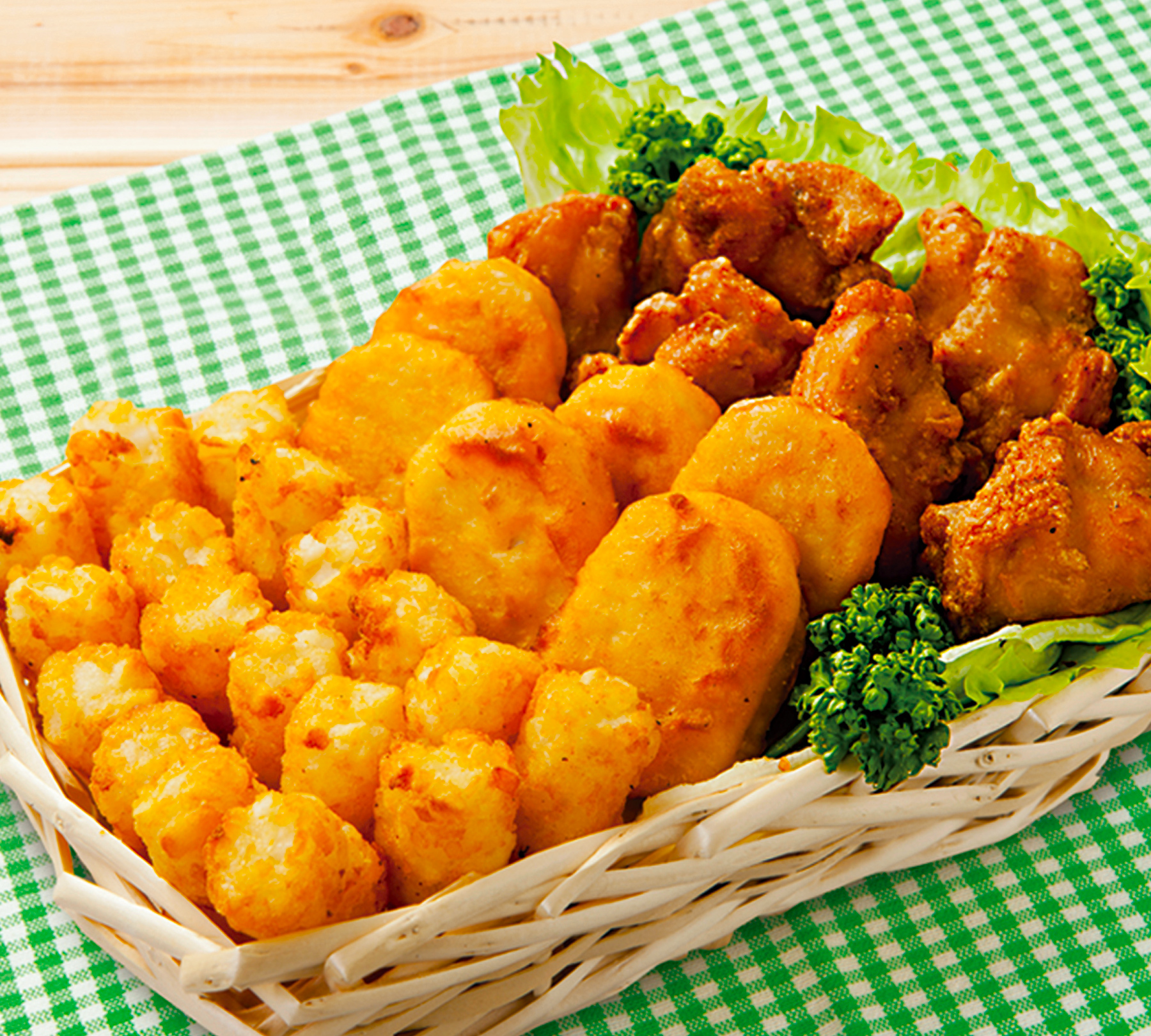 【Lサイズ】鶏もも唐揚げ6個、チキンナゲット6個、サイコロポテト18個